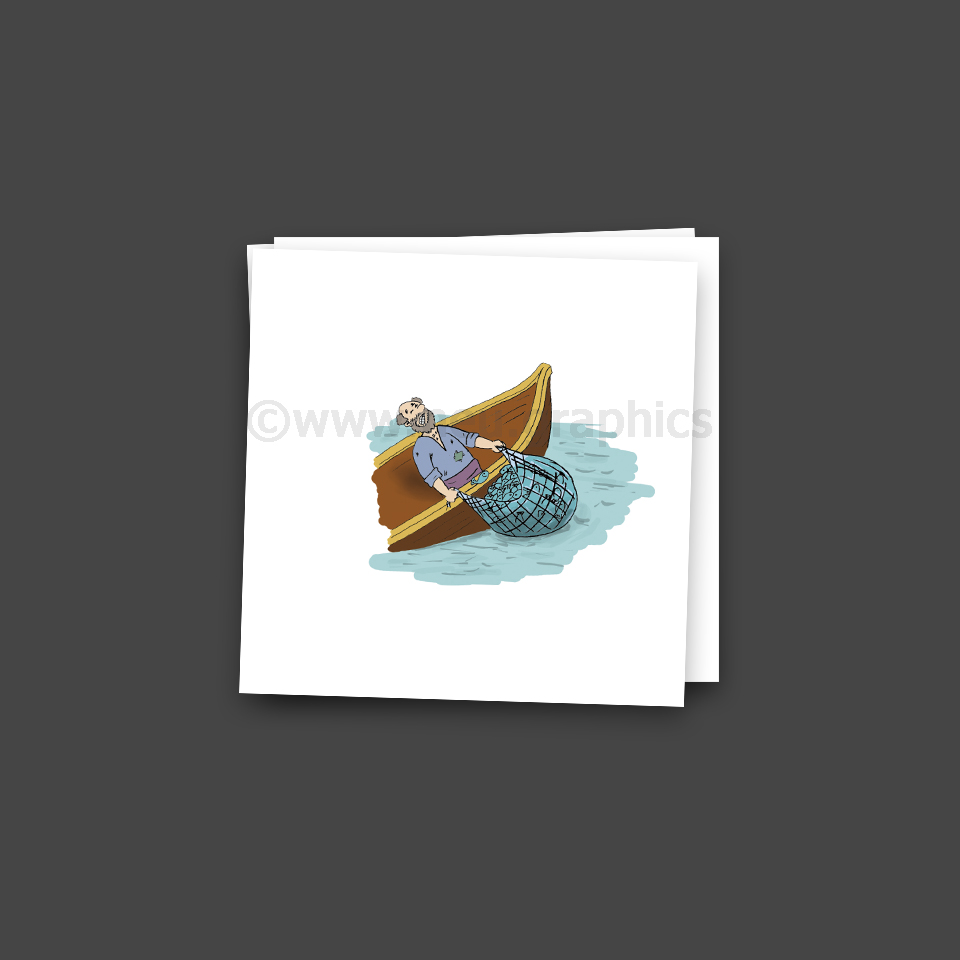 Fischer, Illustration für Spielkarte aus 'Drei gewinnt!'