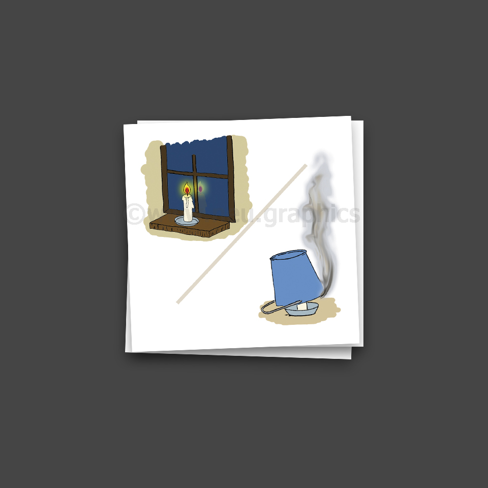 Licht unter dem Scheffel, Illustration für Spielkarte 'Drei gewinnt!'