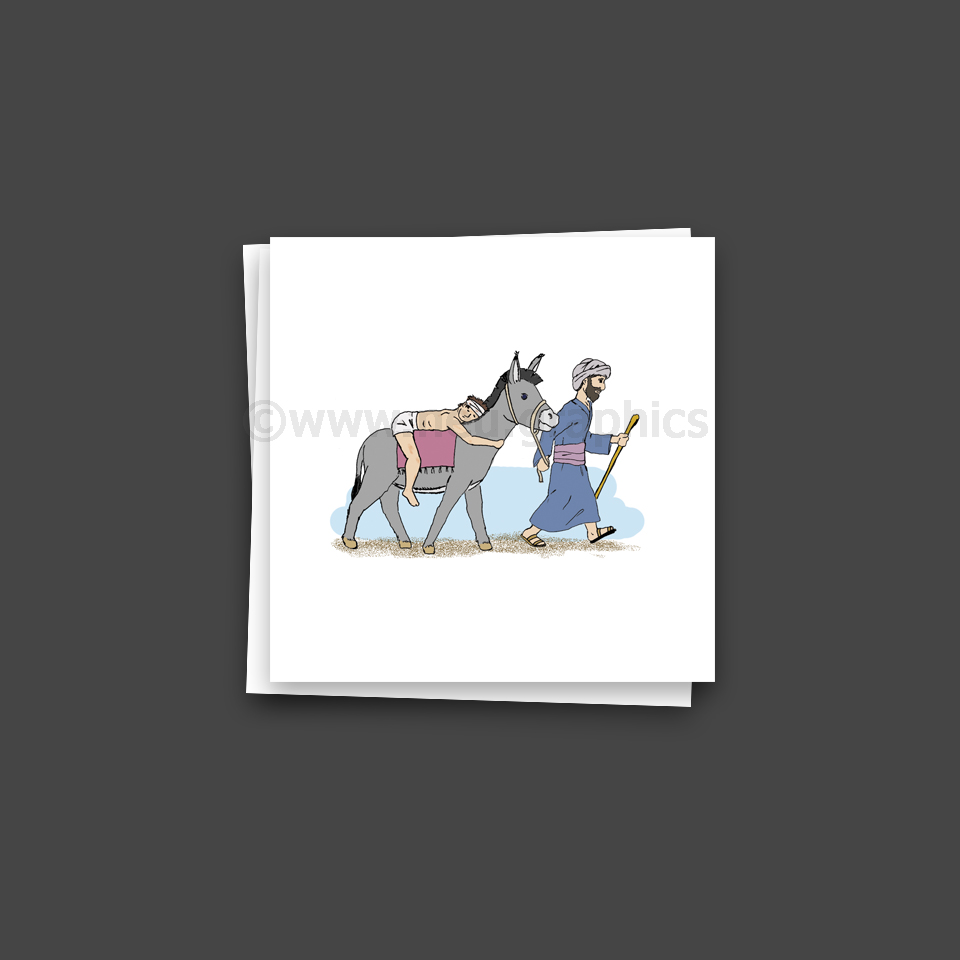 Barmherziger Samariter, Illustration für Spielkarte 'Drei gewinnt!'